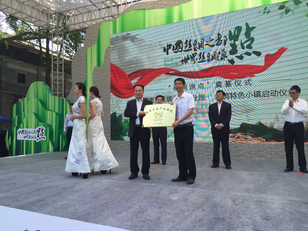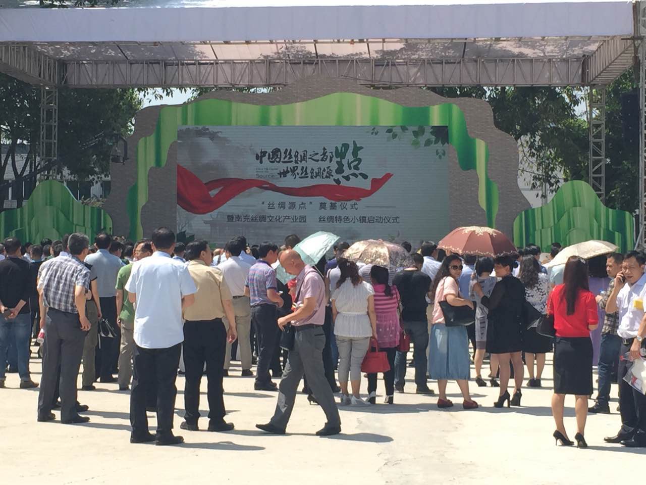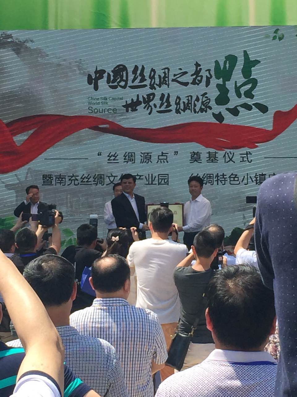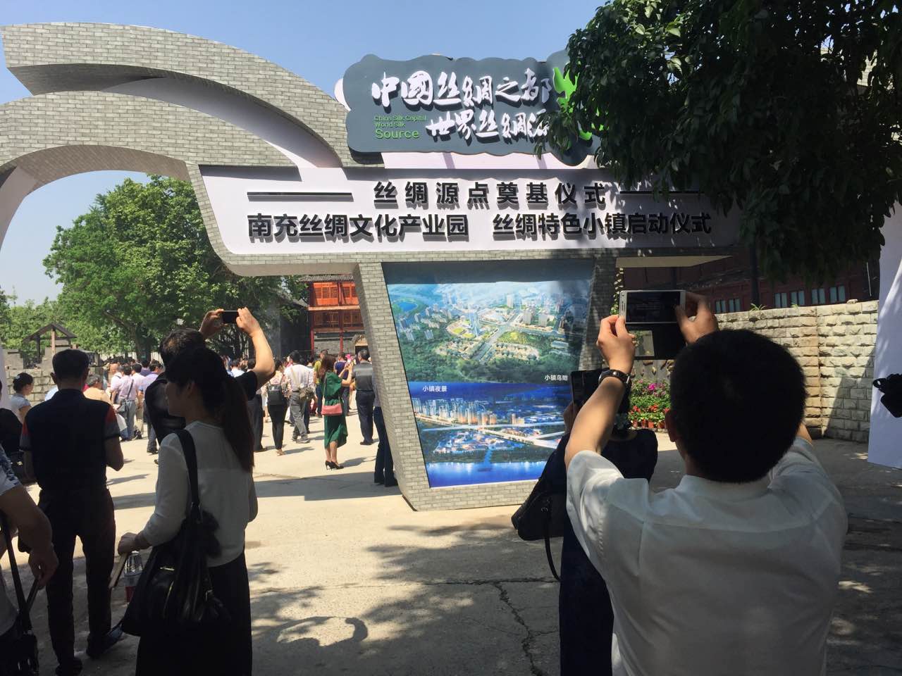 5月11日,由中國(guó)絲綢協(xié)會(huì)主辦,南充市人民政府承辦的“絲綢源點(diǎn)”奠基儀式, 在位于高坪區(qū)都京街道的六合集團(tuán)廠區(qū)內(nèi)舉行。至此,經(jīng)過(guò)數(shù) 年 的 尋 蹤 、 論證,“絲綢源點(diǎn)”碑牌最終落子嘉陵江邊美麗的中國(guó)絲綢之都———南充, 矗立在南充絲綢文化產(chǎn)業(yè)園內(nèi)的都京絲綢特色小鎮(zhèn)。