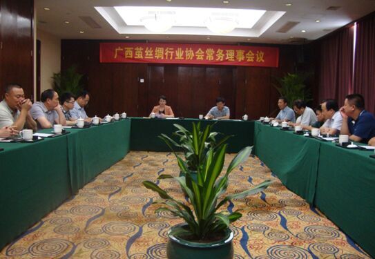 5月20日下午,廣西繭絲綢行業(yè)協(xié)會在南寧市召開常務(wù)理事會議,常務(wù)理事單位董事長、總經(jīng)理共28人參加會議。會議由蘭樹思會長主持。自治區(qū)工信委輕紡處(繭絲辦)吳青副處長和梁維佳工程師到會指導(dǎo)。