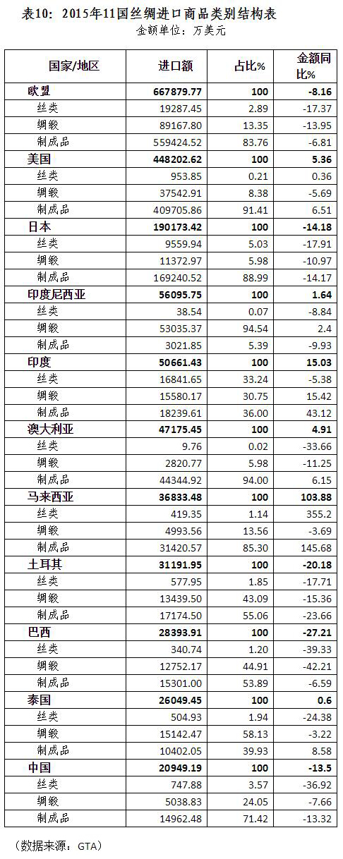 2、絲類和綢緞作為原料性商品,受產(chǎn)地和加工能力限制,各國(guó)產(chǎn)品種類、檔次和質(zhì)量等存在一定差異,出口下降主要是后續(xù)制成品生產(chǎn)減少所致;