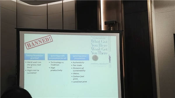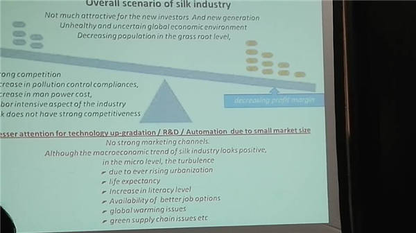 發(fā)言主題《印度及全球絲調(diào)發(fā)展》,主席在發(fā)言中提到了應專注于“技術”代替絲綢行業(yè)現(xiàn)狀,以增加附加值和技術力量。