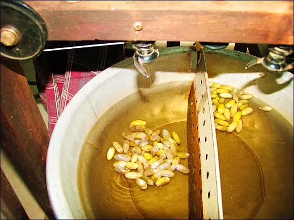 柬埔寨蠶結(jié)成的是黃色的繭,與中國蠶的白繭完全不同