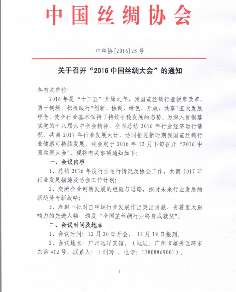 中國絲綢協(xié)會關(guān)于召開“2016中國絲綢大會”的通知