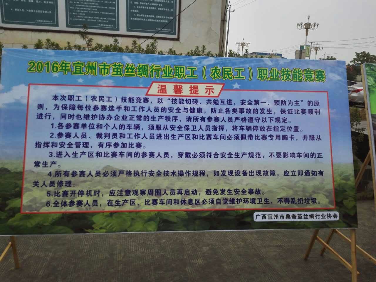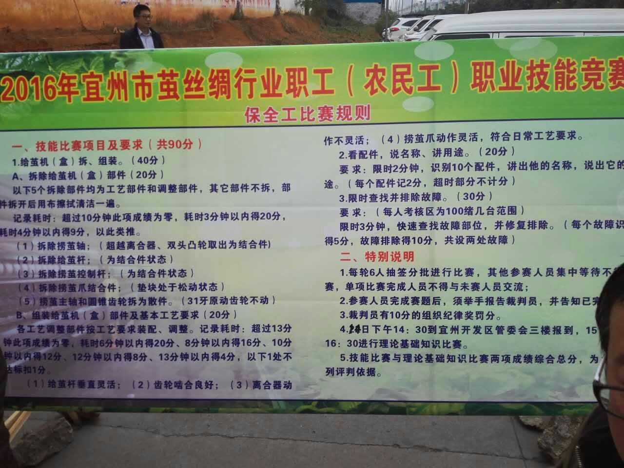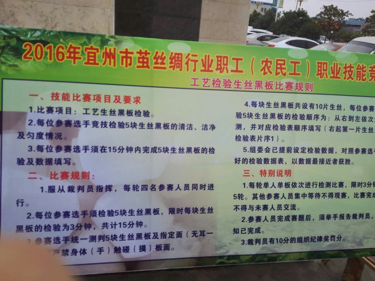 我們預祝2016年宜州市繭絲綢行業(yè)職工(農(nóng)民工)職業(yè)技能競賽取得圓滿成功!