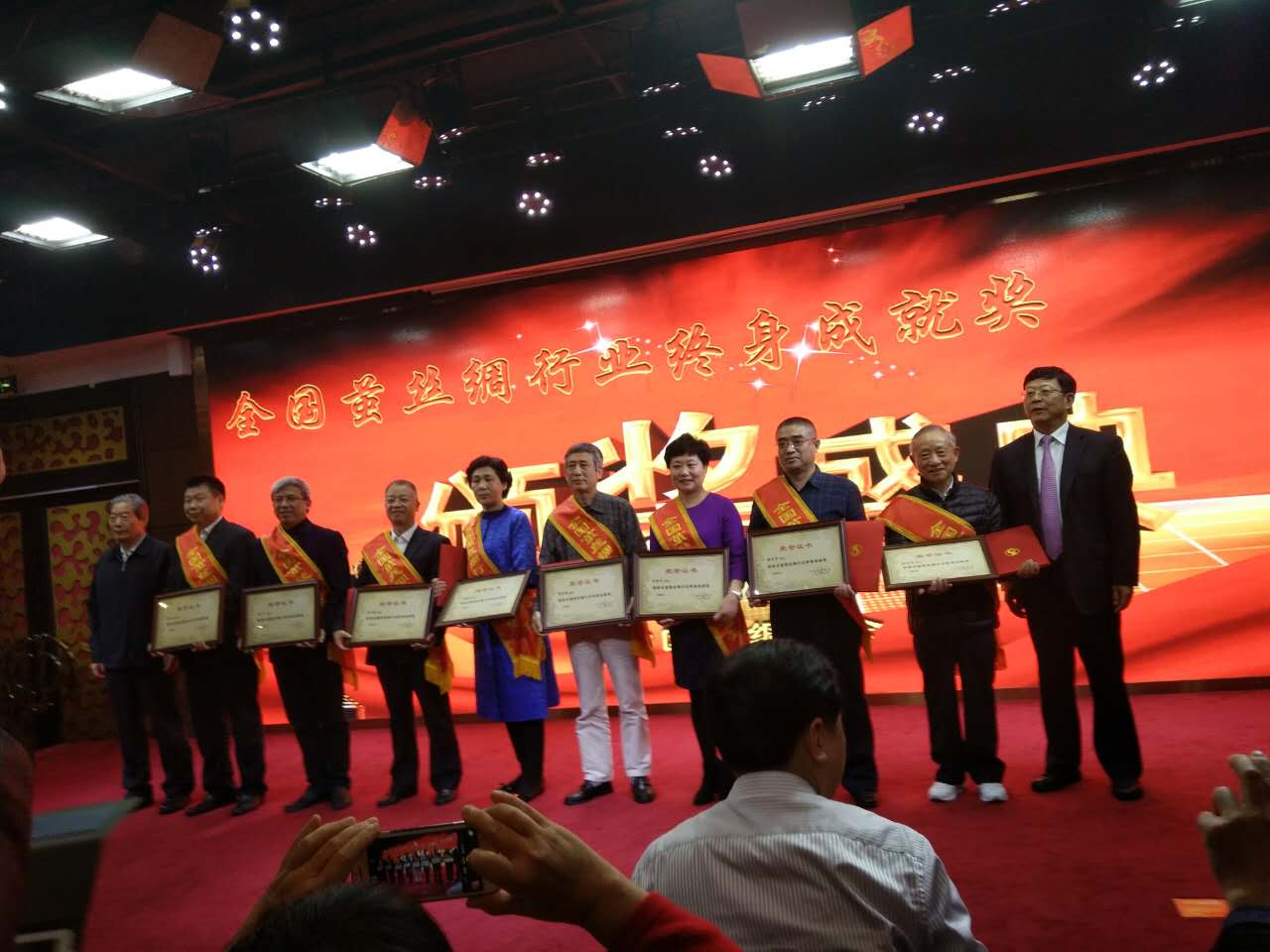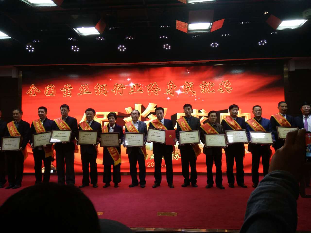 根據(jù)議程,廣東省絲綢紡織集團有限公司董事長柯慧琪首先致辭,商務部市場運行與消費促進司陳平副巡視員發(fā)表重要講話后,中國絲綢協(xié)會會長楊永元作2016年行業(yè)發(fā)展報告,中國絲綢協(xié)會副會長兼秘書長錢有清作理事會工作報告。廣東省繭絲綢行業(yè)協(xié)會張慶增、鑫緣繭絲綢集團股份有限公司董事長儲呈平,達利絲綢(浙江)有限公司董事長林平分別發(fā)言。 在下午的議程中,浙江嘉欣絲綢股份有限公司董事長周國建、絲綢之路集團控股有限公司凌蘭芳、廣西桂合集團有限公司賴以軍和四川朗瑞絲綢有限公司董事長吳金良分別就行業(yè)發(fā)展現(xiàn)狀及未來態(tài)勢發(fā)言。 在最后隆重的“全國繭絲綢行業(yè)終身成就獎”的頒獎儀式上,36位奮斗在蠶桑繭絲綢行業(yè)并作出杰出貢獻的優(yōu)秀人物獲獎,獲獎代表萬事利集團有限公司總裁李建華和杭州紡織機械有限公司董事長葉文將發(fā)表獲獎感言。 2016年中國絲綢大會圓滿完成各項議程,勝利落下帷幕。此次絲綢大會,聚智慧、拓新路,話變革。此次絲綢大會,是勝利的大會,奮進的大會,必將對中國絲綢行業(yè)的可持續(xù)健康發(fā)展產(chǎn)生深遠的影響。