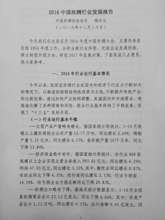 中國絲綢協(xié)會(huì)會(huì)長(zhǎng)楊永元:2016年行業(yè)發(fā)展報(bào)告