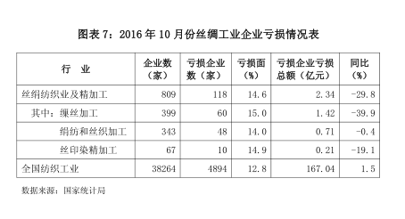 據(jù)國家統(tǒng)計(jì)局?jǐn)?shù)據(jù),1-10 月,全國 809 家規(guī)模以上絲綢工業(yè)企業(yè)主營業(yè)務(wù)收入 997.05 億元,同比增長 4.3%;實(shí)現(xiàn)利潤總額 45.52 億元,同比增長 3.3%。截至 10 月底,絲綢工業(yè)企業(yè)虧損面為 14.6%,虧損企業(yè)虧損總額 2.34 億元,同比下降 29.8%。