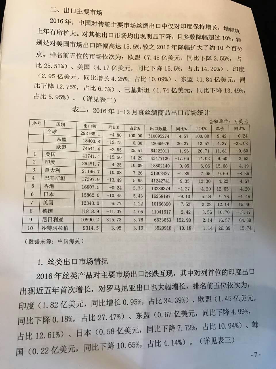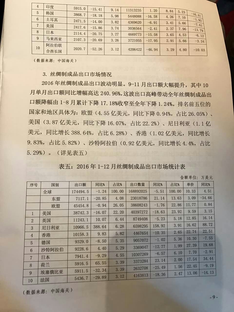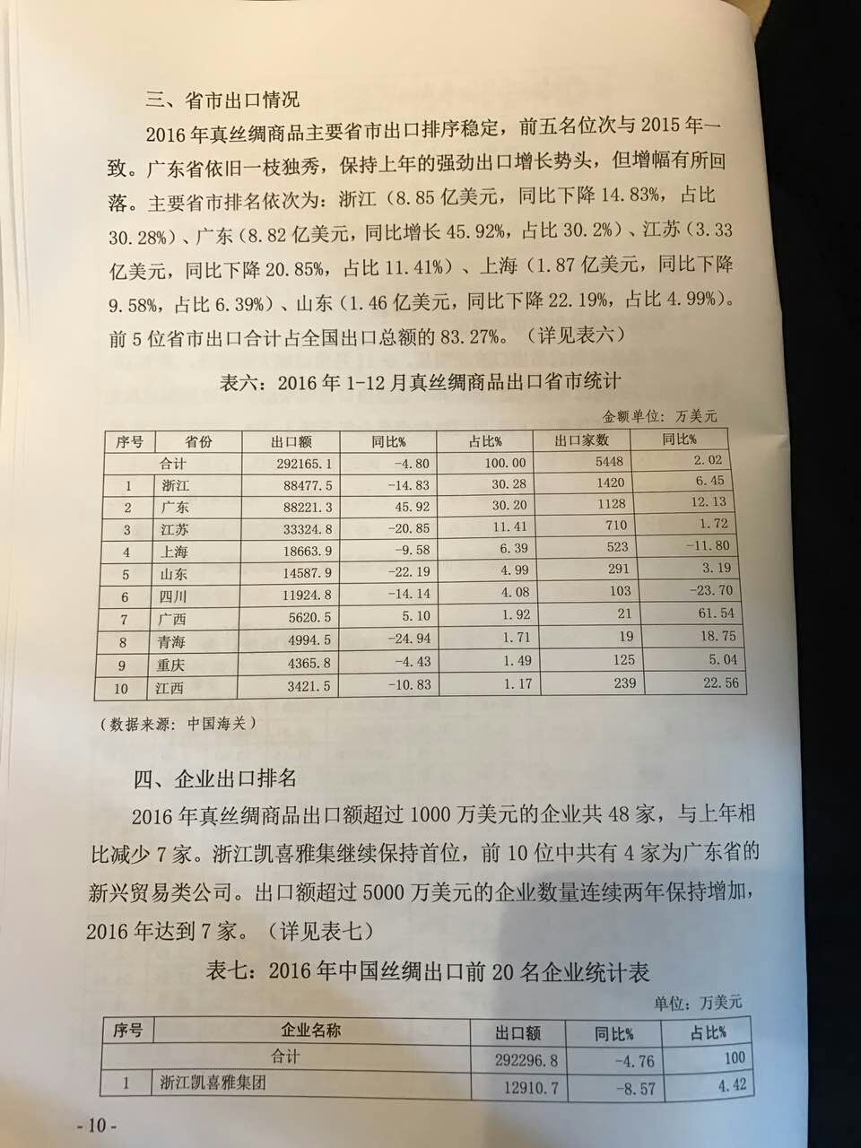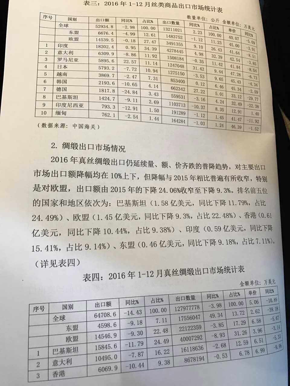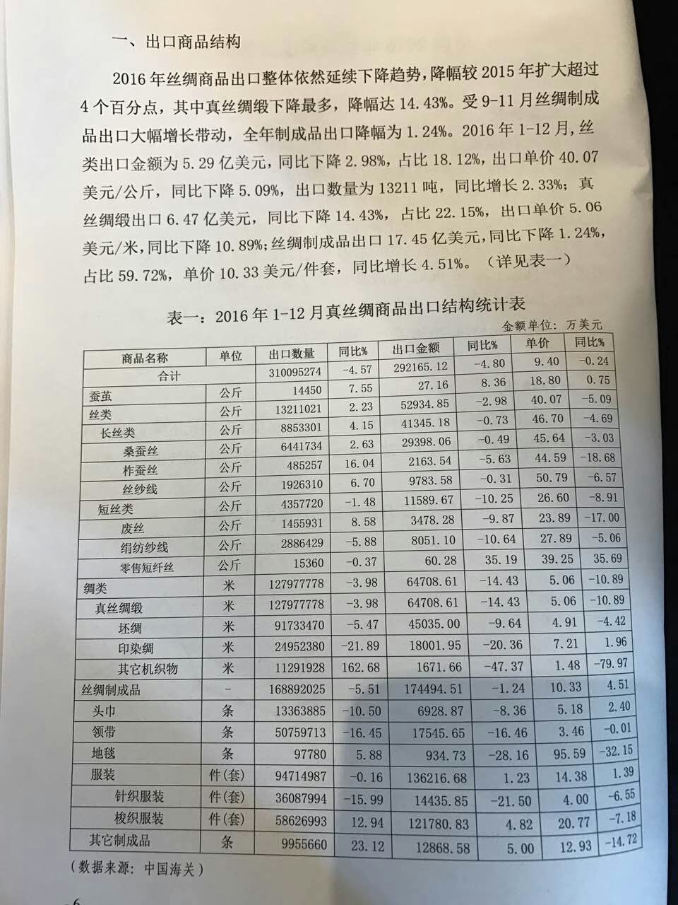 2016年中國絲綢行業(yè)整體出口情況