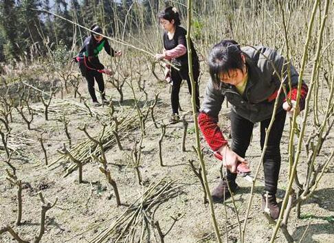 在一畦蠶桑地里,一大片剛剪完枝條的桑樹,在陽光下挺枝傲立,猶如等待接受檢閱的隊伍。正在勞作的43歲村民何貴秀告訴記者,這20畝蠶桑地,是她家新流轉(zhuǎn)過來的,趁這兩天天色好,要抓緊時間剪枝、嫁接,以免耽誤后面的春蠶生產(chǎn)。竹園村原本是該區(qū)貧困村之一,在當(dāng)?shù)卣囊龑?dǎo)扶持下,從2009年開始,當(dāng)?shù)卮迕耜懤m(xù)流轉(zhuǎn)土地種桑養(yǎng)蠶。如今,竹園村已成為黎水鎮(zhèn)的“養(yǎng)蠶第一村”。