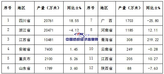 2016年1-12月各省市真絲綢緞產(chǎn)量表