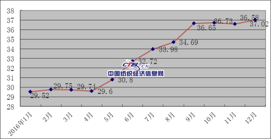 2016年,受廣西等地蠶繭產(chǎn)量下降,國(guó)內(nèi)繭絲原料供應(yīng)總體偏緊的影響,繭絲價(jià)格從二季度開(kāi)始逐步震蕩走高。截止到12月底,干繭和生絲價(jià)格分別較2015年同期增長(zhǎng)了37.72%和26.52%,全年繭絲價(jià)格持續(xù)上升態(tài)勢(shì)明顯。