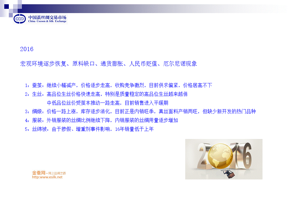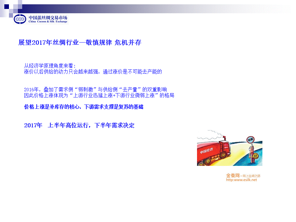 講了很多影響絲綢價格的因素,對于2017年,我們要把擔(dān)心變?yōu)槔硇浴?/span>