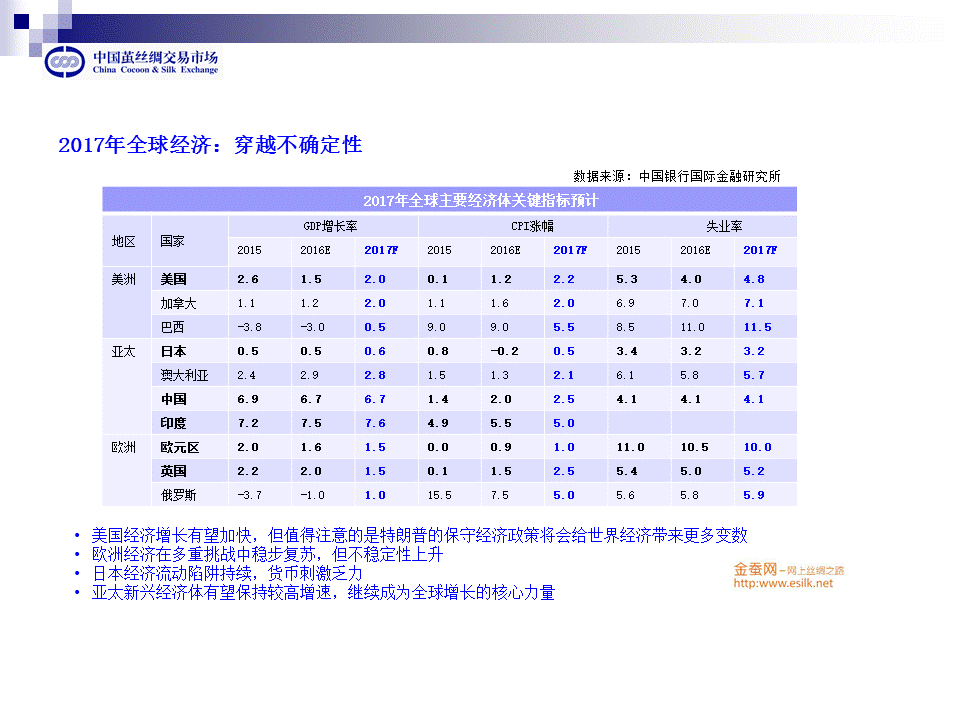 總體而言,17年全球經(jīng)濟(jì)復(fù)蘇正處于重要關(guān)口,這對于我們絲綢行業(yè)而言是中性偏好。