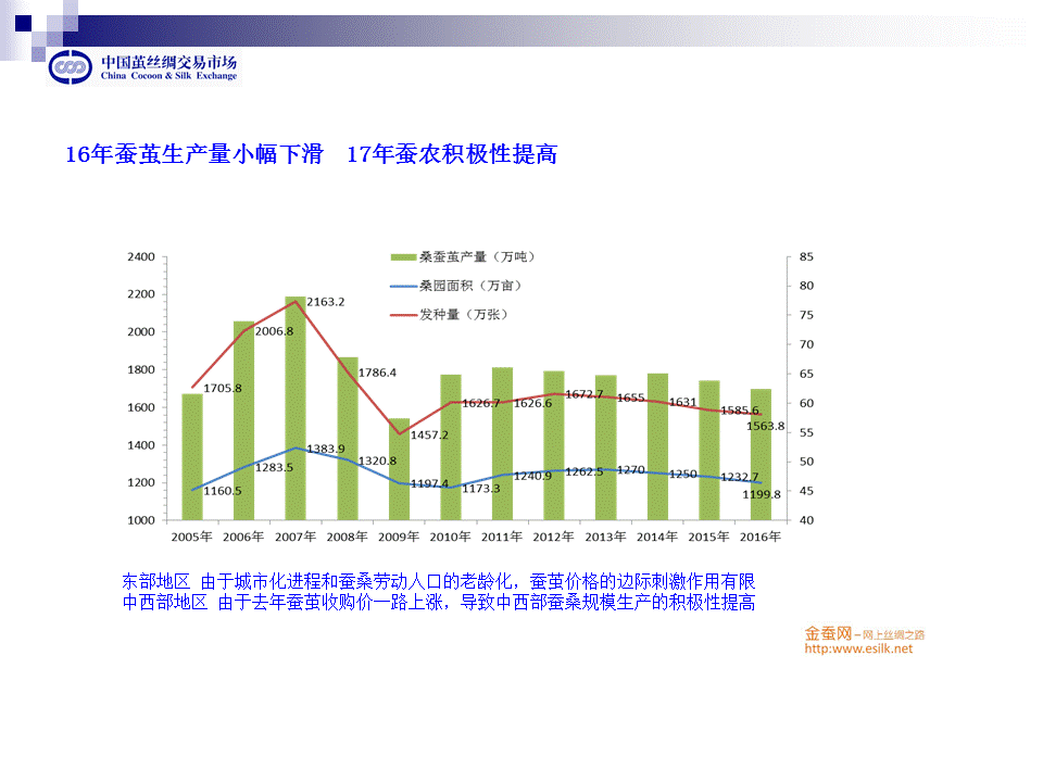 東部地區(qū)由于城市化進(jìn)程和蠶桑勞動人口的老齡化,蠶繭價格的邊際刺激作用有限。