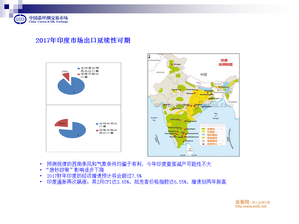 對于今年印度市場,首先,預(yù)測的氣象條件均偏于有利,因此今年印度蠶繭減產(chǎn)可能性不大。