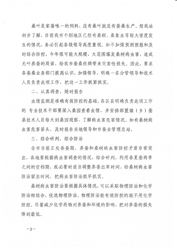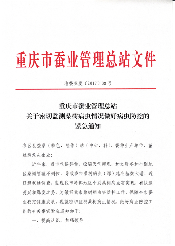 重慶市關(guān)于密切監(jiān)測桑樹病蟲情況做好病蟲防控的緊急通知