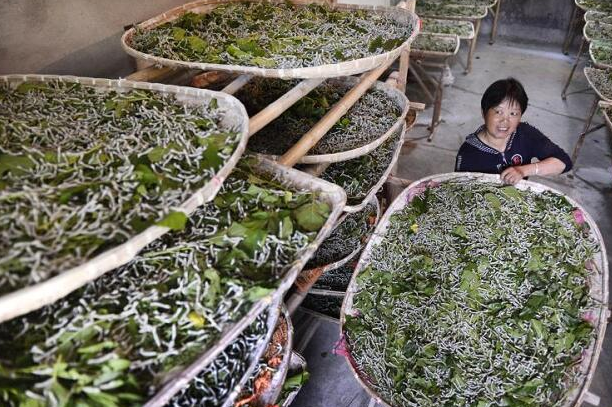 1日,在舟山鎮(zhèn)的馬關村,村民陳愛琴正忙著給蠶寶寶喂桑葉?!艾F(xiàn)在正是蠶寶寶的生長期,再過10天左右,等蠶寶寶變成蠶繭,土特產公司的人就會上門來收購。”陳愛琴說,受去年寒潮影響,桑葉生長不好,導致今年蠶繭的收購時間較往年推遲了一周左右。