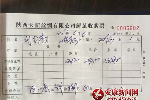 6月6日,是石泉縣兩河鎮(zhèn)雙河村一組蠶農(nóng)劉侖高最高興的日子,當(dāng)天他的第一批方格簇春蠶繭222斤賣得了5328元現(xiàn)金,賣出了24元/市斤的好價(jià)錢,這標(biāo)志著石泉縣從此拉開了2017年春季蠶繭收購(gòu)的序幕。