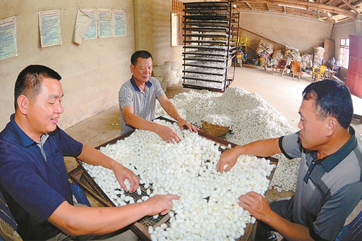 6月2日,昭平縣昭平鎮(zhèn)一繭站工人正在按質(zhì)量要求分揀蠶繭。據(jù)了解,今年該縣蠶繭收購市場形勢(shì)趨好,蠶繭收購價(jià)相比去年每公斤上漲16元,廣大繭農(nóng)喜上眉梢。