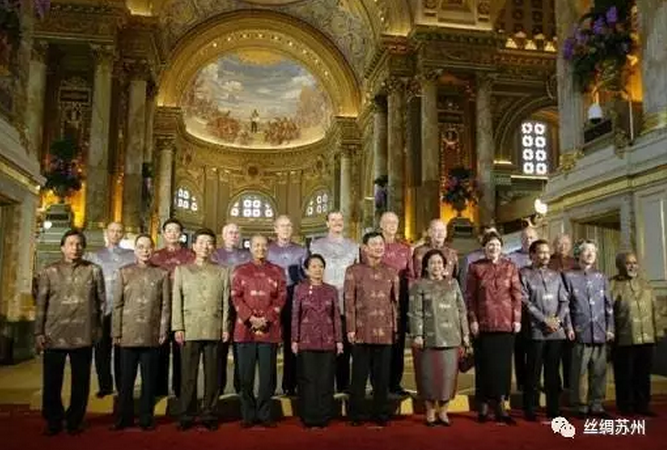 在2003年泰國曼谷召開的APEC峰會上,各國領(lǐng)導(dǎo)人身著泰絲質(zhì)地的民俗服飾亮相,同時也向各國展示了泰絲的華麗與代表著國家的高貴地位。