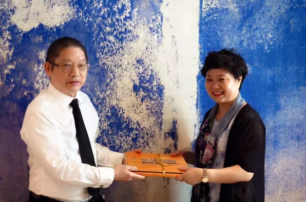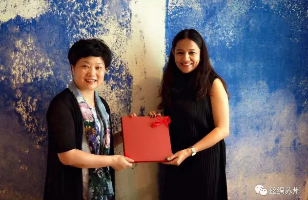 在Jim Thompson總部的考察是愉快的,繡娘絲綢的戚秋蘭總經(jīng)理代表本次考察團(tuán)及蘇州絲綢行業(yè)協(xié)會為surin會長和Chutima經(jīng)理送上她們的“一帶一路”的國禮,以表這次接待的謝意。