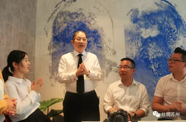 在我們此行的團(tuán)隊中,有兩位同樣是做品牌的企業(yè)家,一位是蘇州繡娘絲綢的戚秋蘭,一位是蘇州羿唐絲綢的郭和裕。