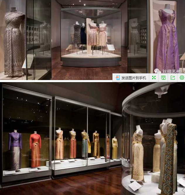 進(jìn)入房間,映入眼前的便是一個個的玻璃櫥窗中陳列著價值連城的禮服,每一件服裝都是詩麗吉皇后跟隨國王參加重要活動的外交禮服。對于皇室來講,泰絲是他們非常重要的文化所在,而他們每個人都擔(dān)當(dāng)起了弘揚(yáng)這項傳統(tǒng)文化的代言人。