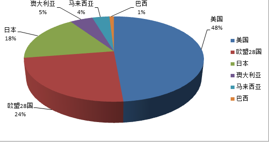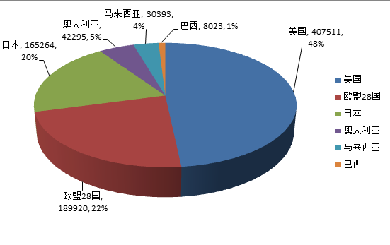 從進(jìn)出口凈額看,美國(guó)、歐盟28國(guó)、日本、澳大利亞、馬來(lái)西亞、巴西分列凈買入前六名??梢?jiàn)美國(guó)是全球絲綢最大的買家。