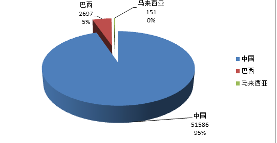 從生絲進(jìn)出口凈額看,中國(guó)凈出口51586美元,占95%的份額,雄踞全球生絲賣家榜首,巴西凈出口2697萬(wàn)美元,約占5%左右。