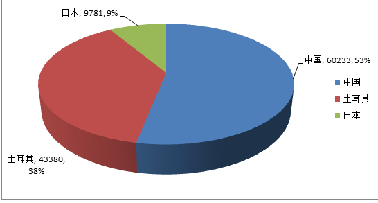 從真絲綢緞凈出口額看,中國(guó)、土耳其、日本分別以凈出口60233萬(wàn)美元、43380萬(wàn)美元、9781萬(wàn)美元位列前三名,中國(guó)是全球真絲綢緞最大的賣家。