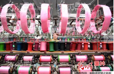 2017年7月17日,江蘇恒源絲綢集團紡絲車間員工正在加緊完成出口真絲綢訂單任務(wù)。
