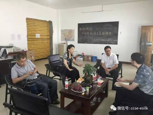 8月3日,廣西出入境檢驗檢疫局科技處處長陳愛榮、廣西出入境檢驗檢疫局技術(shù)中心副主任羅兆飛、廣西出入境檢驗檢疫局國家生絲及絲制品檢測重點(diǎn)實(shí)驗室主任郭蔚等一行在宜州市政府蠶桑循環(huán)辦主任覃嘉慶等陪同下,蒞臨中國繭絲綢交易市場廣西辦事處進(jìn)行考察指導(dǎo)。
