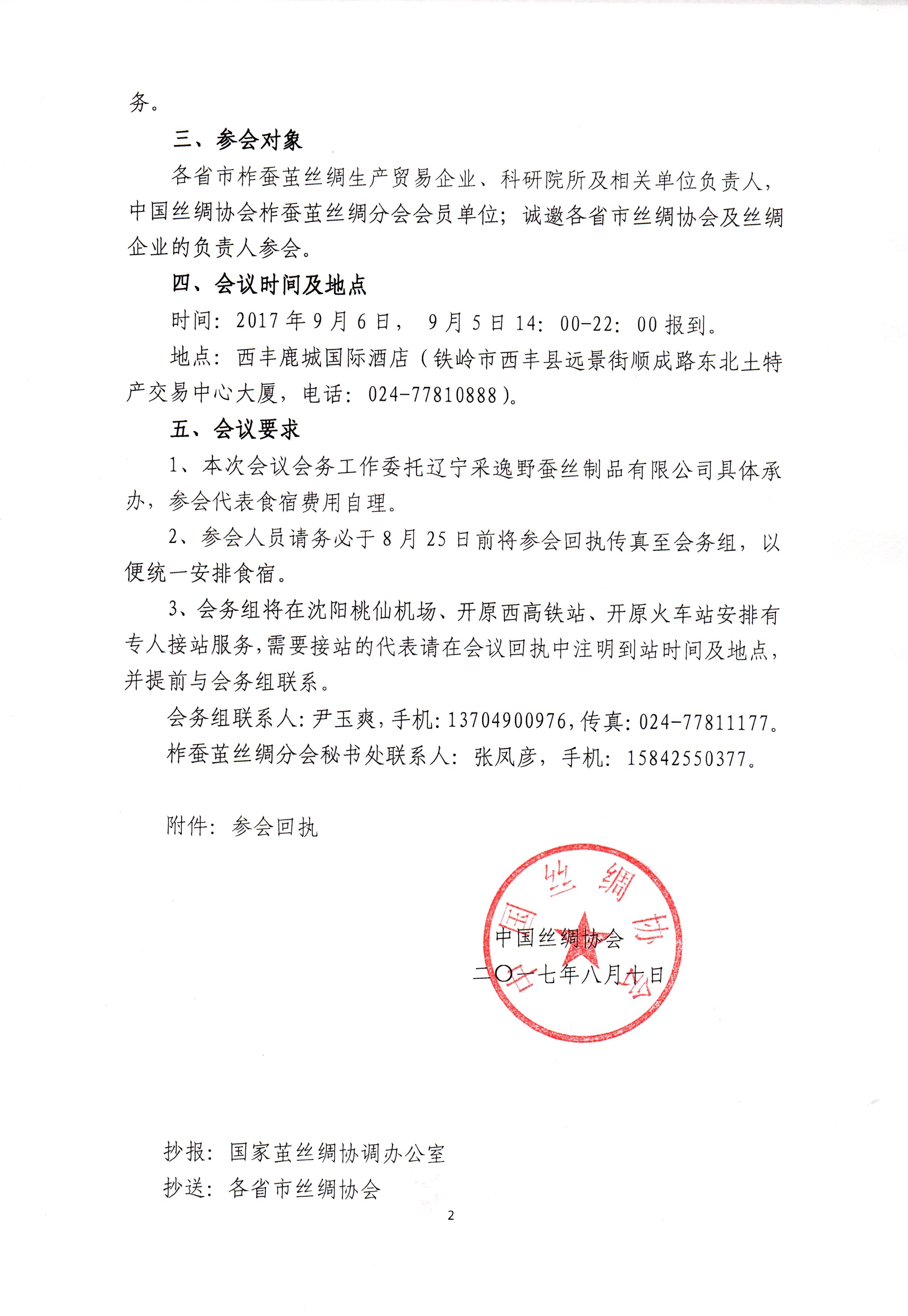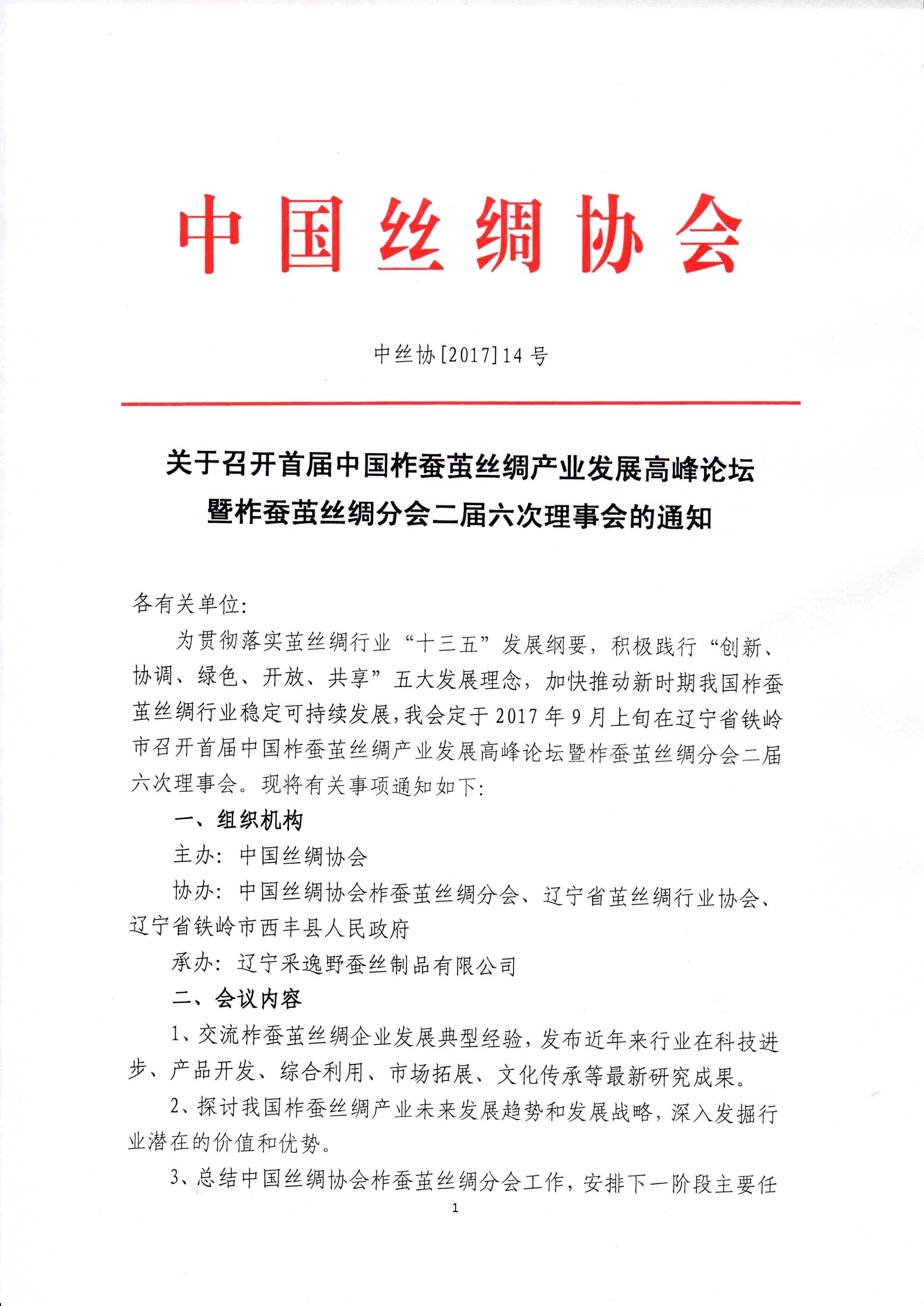 中國(guó)絲綢協(xié)會(huì)關(guān)于召開(kāi)首屆中國(guó)柞蠶繭絲綢產(chǎn)業(yè)發(fā)展高峰論壇暨柞蠶繭絲綢分會(huì)二屆六次理事會(huì)的通知