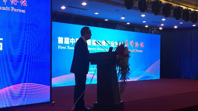 中國絲綢協(xié)會會長楊永元為中國野蠶博物館揭牌儀式致辭