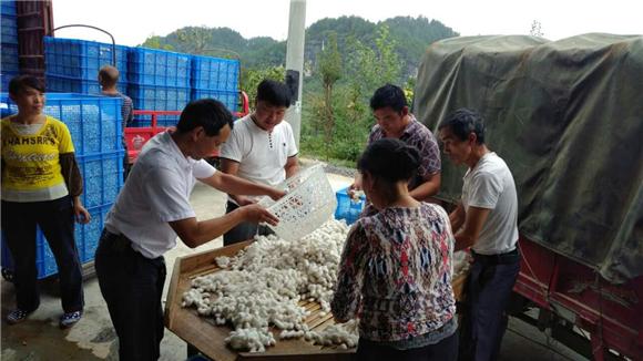 分級選繭、裝車調(diào)運,工作人員開心地忙碌著。通訊員 鄭陸軍 攝