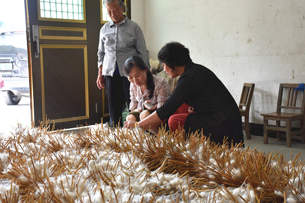 安徽岳西縣中秋繭上市。安徽聯(lián)豐公司實行優(yōu)質優(yōu)價、二次返利、讓利蠶農(nóng)的作法,每位蠶農(nóng)交明白繭、放心繭。