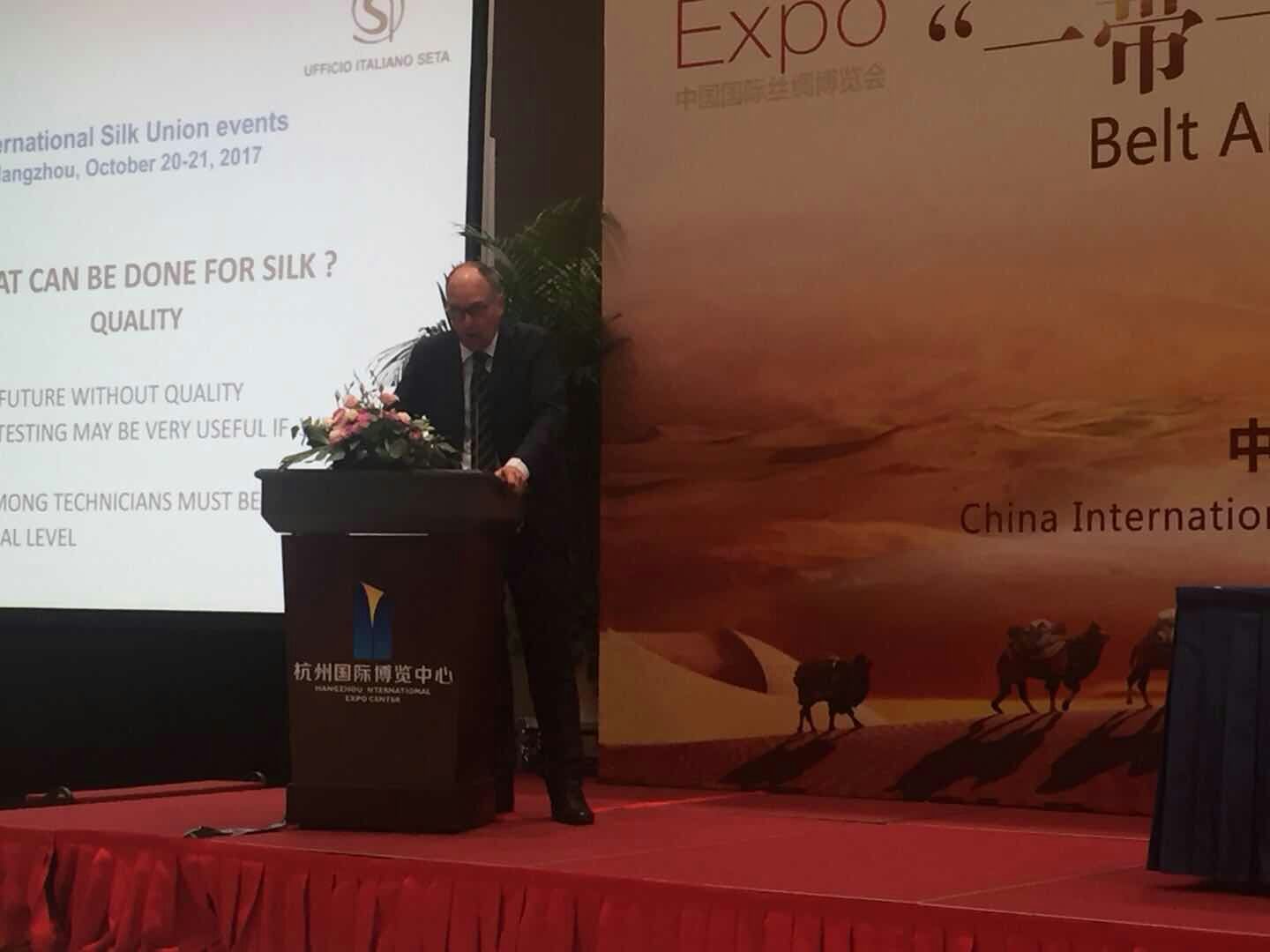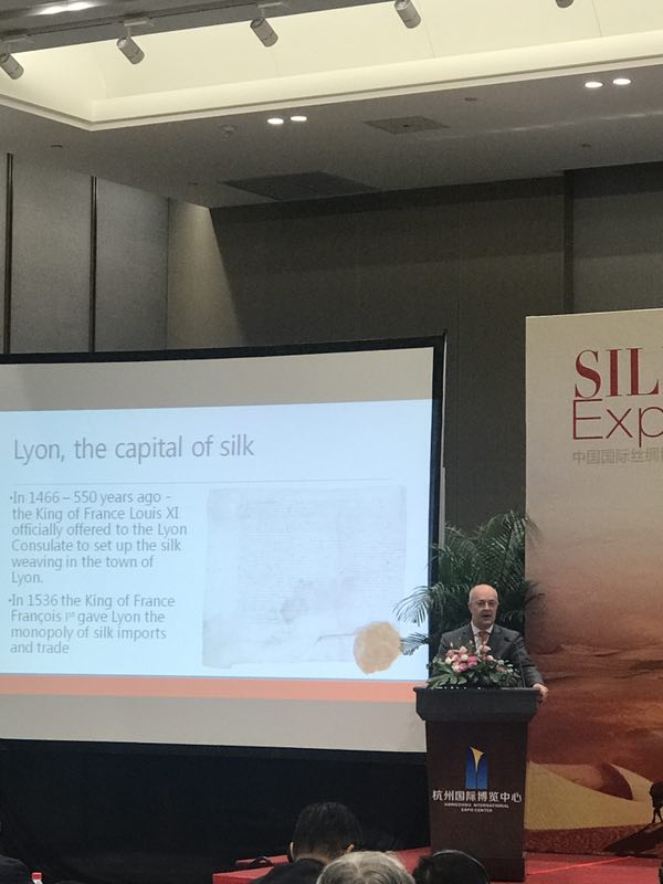 論壇由國際絲綢聯盟秘書長費建明主持。國際絲綢主席李繼林和杭州經信委領導分別致辭,聯盟與柬埔寨會安縣簽訂戰(zhàn)略合作協(xié)議,中國絲綢協(xié)會副會長兼秘書長錢有清作“2016-2017年中國繭絲綢行業(yè)發(fā)展報告”,柬埔寨湄公河大學教授MAO THORA 、意大利絲綢協(xié)會會長STEFANO VITALI,法國絲綢協(xié)會會長XAVIER LEPINGLE ,