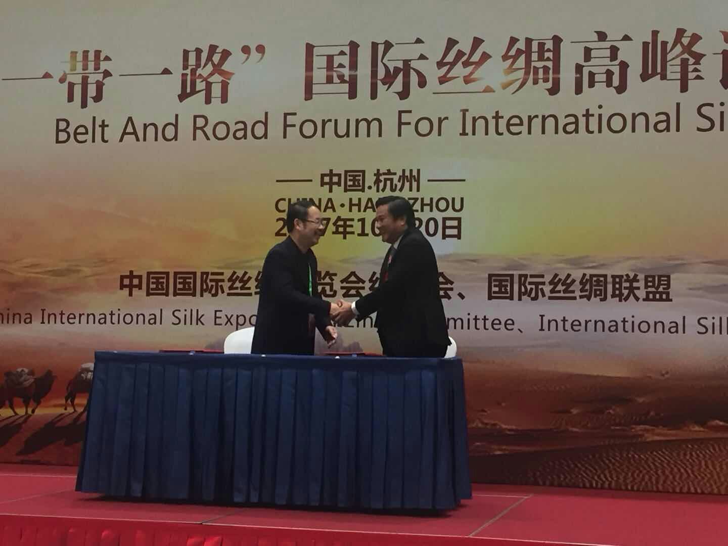 最后,國際絲綢聯盟主席李繼林發(fā)布“世界絲綢杭州共識”。杭州共識中表示,絲綢是全社會的共同財富,絲綢蘊含著人類文明、多國文化、財富通過古絲綢之路的交流融合,在人類社會發(fā)展中留下了厚重璀璨的篇章;中國倡導的“一帶一路”愿景,溯源自陸上絲綢之路和海上絲綢之路,實質是要建設一條新的聯通世界的經貿之路、合作之路、共贏之路、和平之路,這是世界絲綢共同發(fā)展的良機;國際絲綢聯盟的成員單位要加強相互交流,促進經貿合作,推進投資興業(yè),推動世界絲綢產業(yè)健康、和諧、可持續(xù)發(fā)展,使絲綢繼續(xù)造福民生。造福社會;國際絲綢聯盟的技術創(chuàng)新、時尚設計、歷史文化、教育科研、貿易制造五個專業(yè)委員會要在各自范圍內努力開展具有開創(chuàng)性、引領性、包容性的課題研究,以期取得能推動產業(yè)發(fā)展的實質性成果;國際絲綢聯盟旨在關切關注世界絲綢產業(yè)發(fā)展中的熱點難點問題,整合資源,相互協(xié)作,形成合力,努力化解難題;國際絲綢聯盟要努力與絲綢生產消費國各層面建立交流渠道和良好互信,爭取得到政府層面對絲綢產業(yè)的重視和政策支持。
