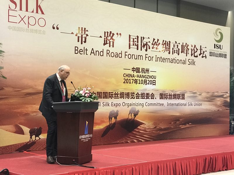 由國際絲綢聯盟與絲博會組委會共同主辦的“一帶一路”國際絲綢高峰論壇下午召開。柬埔寨商務部國務秘書、農林漁業(yè)部副部長,中國、意大利、法國、泰國、越南等國的絲綢協(xié)會會長、副會長,以及中國、意大利、法國、希臘、巴西、柬埔寨、越南、中國香港等國家和地區(qū)的絲綢企業(yè)和組織代表參會,深度溝通交流“一帶一路”背景下世界絲綢產業(yè)可持續(xù)發(fā)展的方向和路徑。