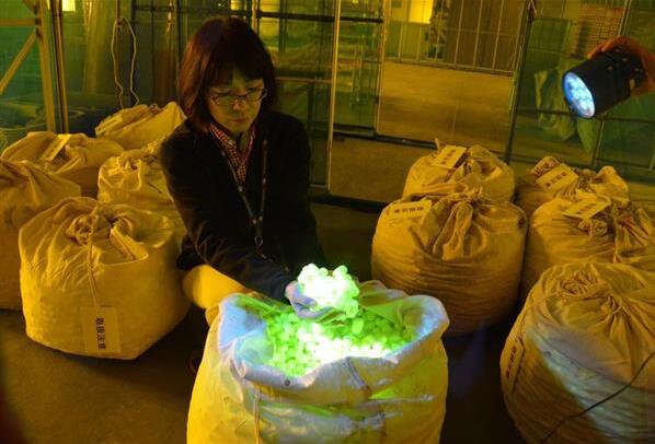 自上個月群馬縣內(nèi)養(yǎng)蠶農(nóng)戶培育的轉(zhuǎn)基因桑蠶所結(jié)的繭首次開始出貨,已經(jīng)有大約170千克的熒光蠶繭被送到了群馬縣蠶絲技術(shù)中心。