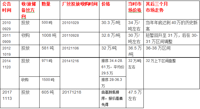“拋儲(chǔ)了……”“價(jià)格跌了嗎?……”“價(jià)格跌了多少?……”, 國家拋儲(chǔ)價(jià)格就下跌是偏見。上漲趨勢(shì)中廠絲投放后價(jià)格上漲的概率大,而在下跌趨勢(shì)中的廠絲投放價(jià)格下跌的概率也最大。
