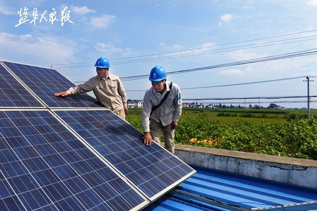 △東臺供電公司富安供電所員工到蠶農(nóng)周書云家檢查光伏發(fā)電電池板及線路情況。
