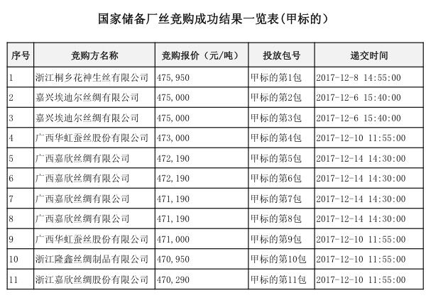 國(guó)家儲(chǔ)備廠絲競(jìng)購(gòu)成功企業(yè)名單