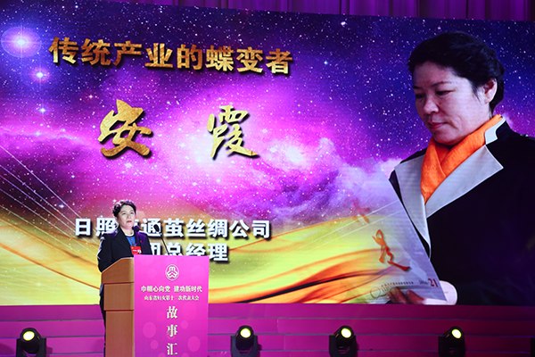 莒縣海通繭絲綢有限公司總工程師安霞分享了一位巾幗掌門人將絲綢文化融入文化工業(yè)旅游,使企業(yè)在競爭的大潮中鳳凰涅槃、破繭成蝶的故事。