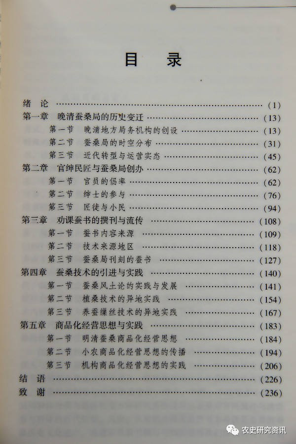 中華農(nóng)業(yè)文明研究院文庫·中國近現(xiàn)代農(nóng)業(yè)史叢書,農(nóng)史研究領(lǐng)域涉及晚清蠶桑業(yè)與蠶桑局發(fā)展變遷的專著《晚清蠶桑局及蠶桑業(yè)發(fā)展研究》(高國金 著)一書,日前已由中國農(nóng)業(yè)科學(xué)技術(shù)出版社正式出版發(fā)行【書號:ISBN 978-7-5116-2983-8,中國版本圖書館CIP數(shù)據(jù)核字(2017)第033893號】。全書計(jì)270千字,2017年8月第1版第1次印刷,定價(jià)39元。