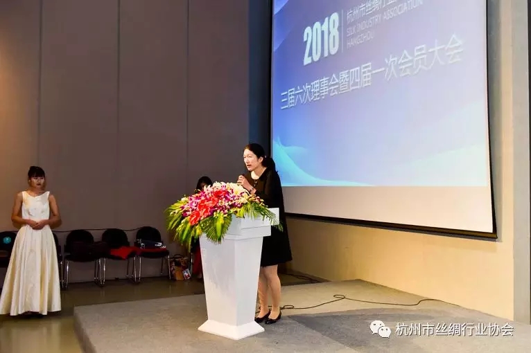 中國(guó)絲綢協(xié)會(huì)唐琳會(huì)長(zhǎng)、浙江省絲綢協(xié)會(huì)吳金根會(huì)長(zhǎng)分別代表上級(jí)協(xié)會(huì),對(duì)市協(xié)會(huì)四屆理事會(huì)成立致辭。