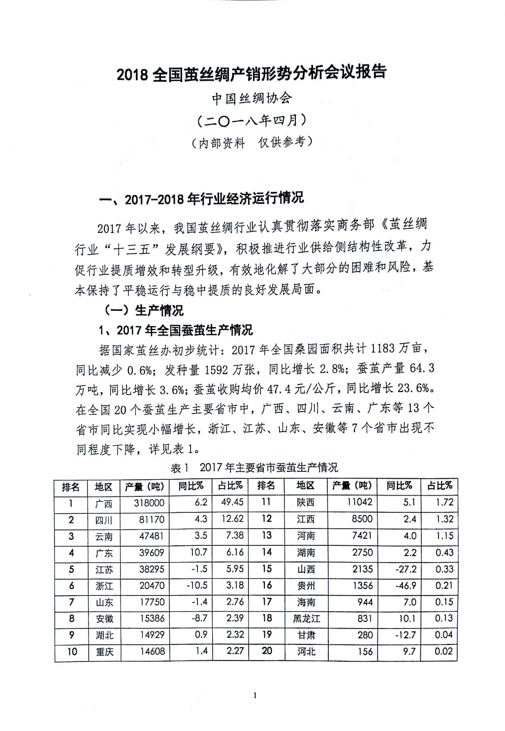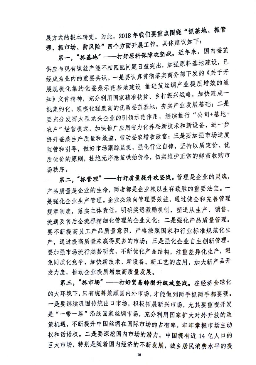 中國絲綢協(xié)會劉文全秘書長:2018全國繭絲綢產(chǎn)銷形勢分析會議報告