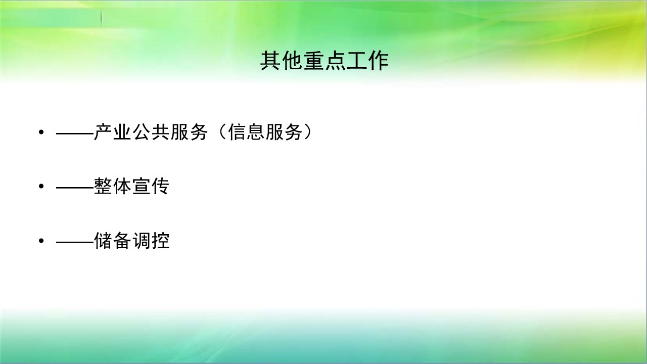 以上是有關(guān)規(guī)模化集約化基地建設(shè)工作的主要內(nèi)容。明天協(xié)會(huì)安排了現(xiàn)場(chǎng)參觀交流,通過(guò)現(xiàn)場(chǎng)參觀,大家將對(duì)規(guī)?;毓ぷ饔懈庇^的認(rèn)識(shí)。我想說(shuō)明的是,除了這項(xiàng)補(bǔ)短板的重點(diǎn)工作外,我們還將繼續(xù)開(kāi)展有利于行業(yè)發(fā)展的各項(xiàng)工作。比如產(chǎn)業(yè)公共服務(wù),其中重點(diǎn)是信息服務(wù),我們監(jiān)測(cè)行業(yè)產(chǎn)量、銷(xiāo)量、價(jià)格等信息,及時(shí)反饋樣本企業(yè),并定期不定期在商務(wù)部市場(chǎng)運(yùn)行司網(wǎng)站上公布。希望廣大企業(yè)積極加入成為我們的樣本企業(yè),這既有利于提升行業(yè)信息統(tǒng)計(jì)的有效性,也會(huì)對(duì)本企業(yè)經(jīng)營(yíng)起到好的指引作用。下一步我們內(nèi)貿(mào)信息中心的同志可能會(huì)與各位企業(yè)家聯(lián)系,請(qǐng)大家積極配合做好這項(xiàng)工作。去年我們結(jié)合中國(guó)-中東歐國(guó)家投資貿(mào)易博覽會(huì)、中國(guó)-東盟博覽會(huì)、中國(guó)國(guó)際紡織面料及輔料博覽會(huì),開(kāi)辟繭絲綢專(zhuān)區(qū),開(kāi)展了整體宣傳,許多企業(yè)積極參與,取得了良好宣傳效果,今年將繼續(xù)開(kāi)展類(lèi)似宣傳活動(dòng),拓展絲綢產(chǎn)品市場(chǎng)。再一個(gè),去年年底我們根據(jù)行業(yè)變化開(kāi)展了儲(chǔ)備廠絲投放,今年將繼續(xù)密切關(guān)注行業(yè)發(fā)展形勢(shì),適時(shí)開(kāi)展儲(chǔ)備調(diào)控,維護(hù)行業(yè)健康發(fā)展。