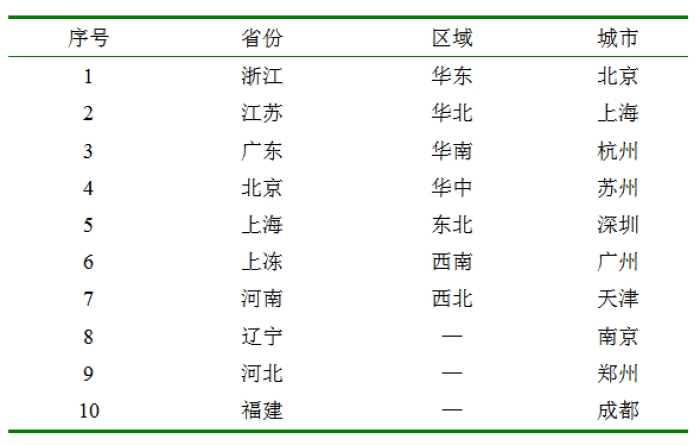 表2 2013-12-01至2016-12-31“蠶絲被”關(guān)注度地域分布