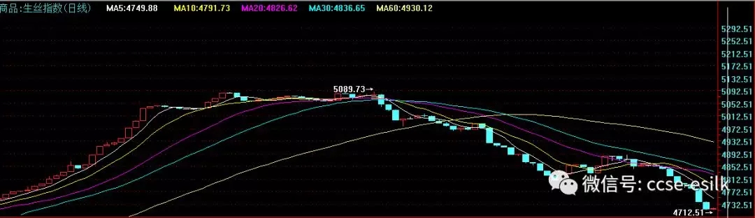 今日盤面小幅反彈,生絲指數(shù)收一小陽K線。從生絲指數(shù)技術(shù)分析,均線系統(tǒng)方面,各條均線繼續(xù)壓制價格,指標MACD綠柱變長,顯示上行阻力仍大。但RSI、KDJ均現(xiàn)向上勾頭,有反彈的需求。買賣力量仍在博弈當中。