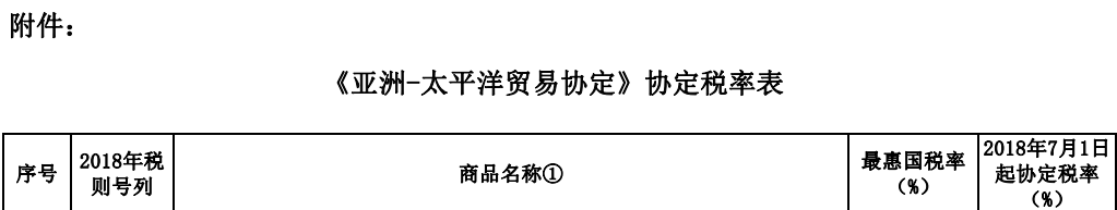 海關(guān)總署公告2018年第65號(關(guān)于實(shí)施《〈亞洲-太平洋貿(mào)易協(xié)定〉第二修正案》協(xié)定稅率的公告)
